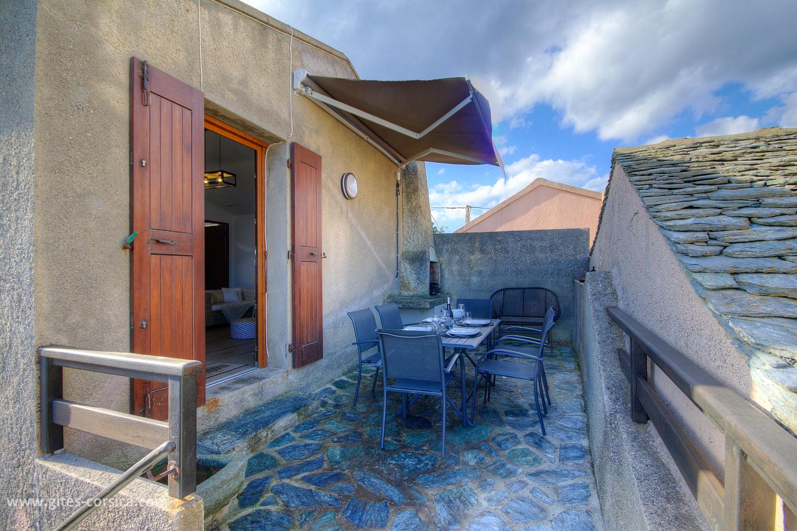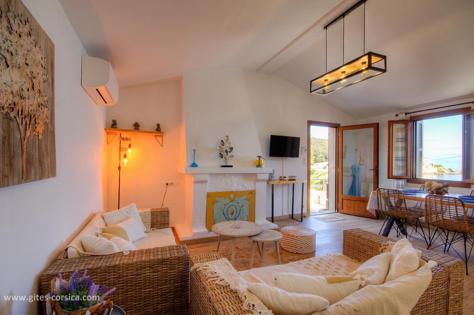 Sur la plage de Meria, gîte de 73 m² au 1er étage d'une maison mitoyenne qui comprend deux autres gîtes. Il se compose ainsi :