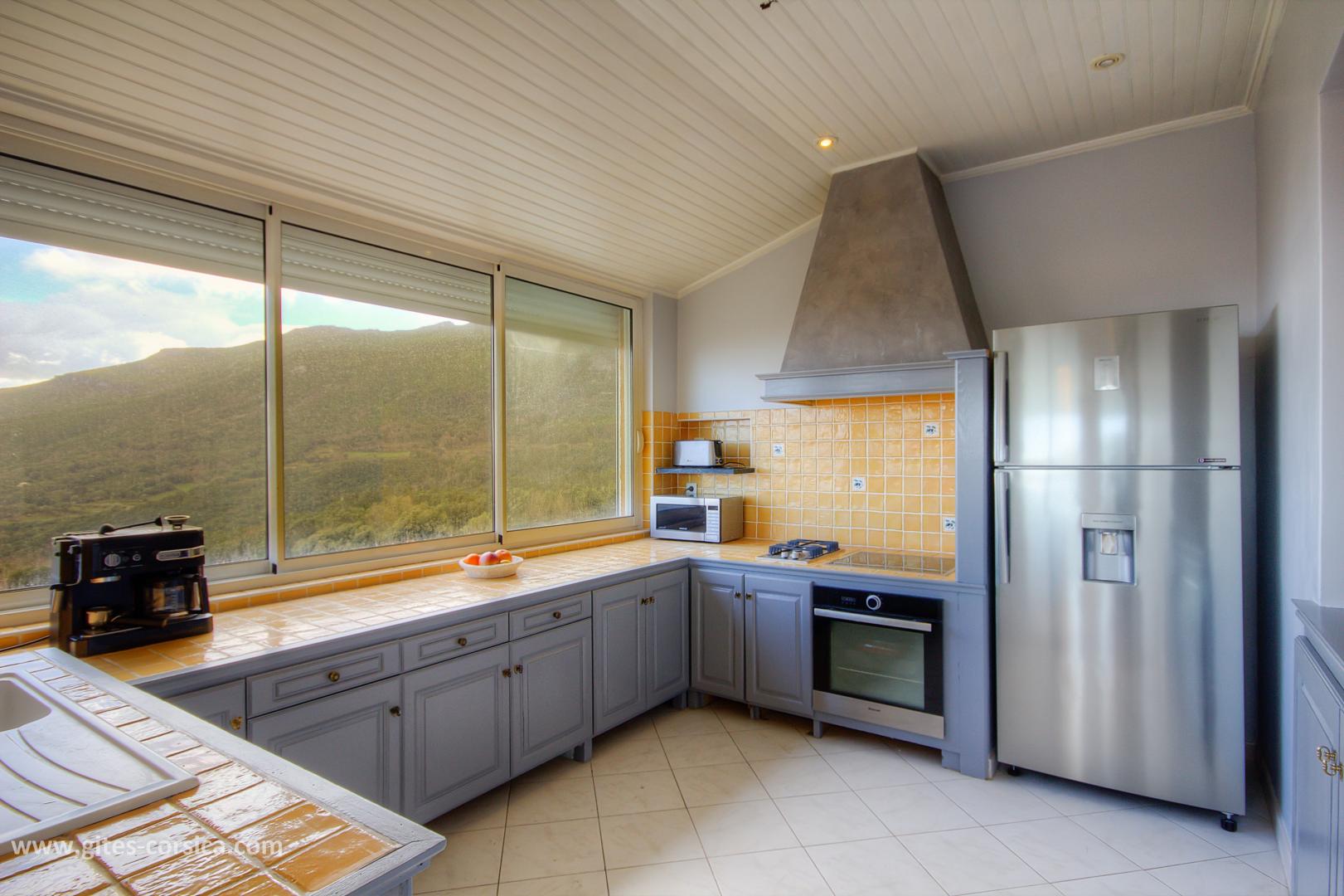 - Cuisine d'été (évier, plancha gaz, lave-vaisselle, réfrigérateur/congélateur, plaque de cuisson 3 feux, barbecue au charbon, bouilloire, grille-pain, cafetière à expresso)