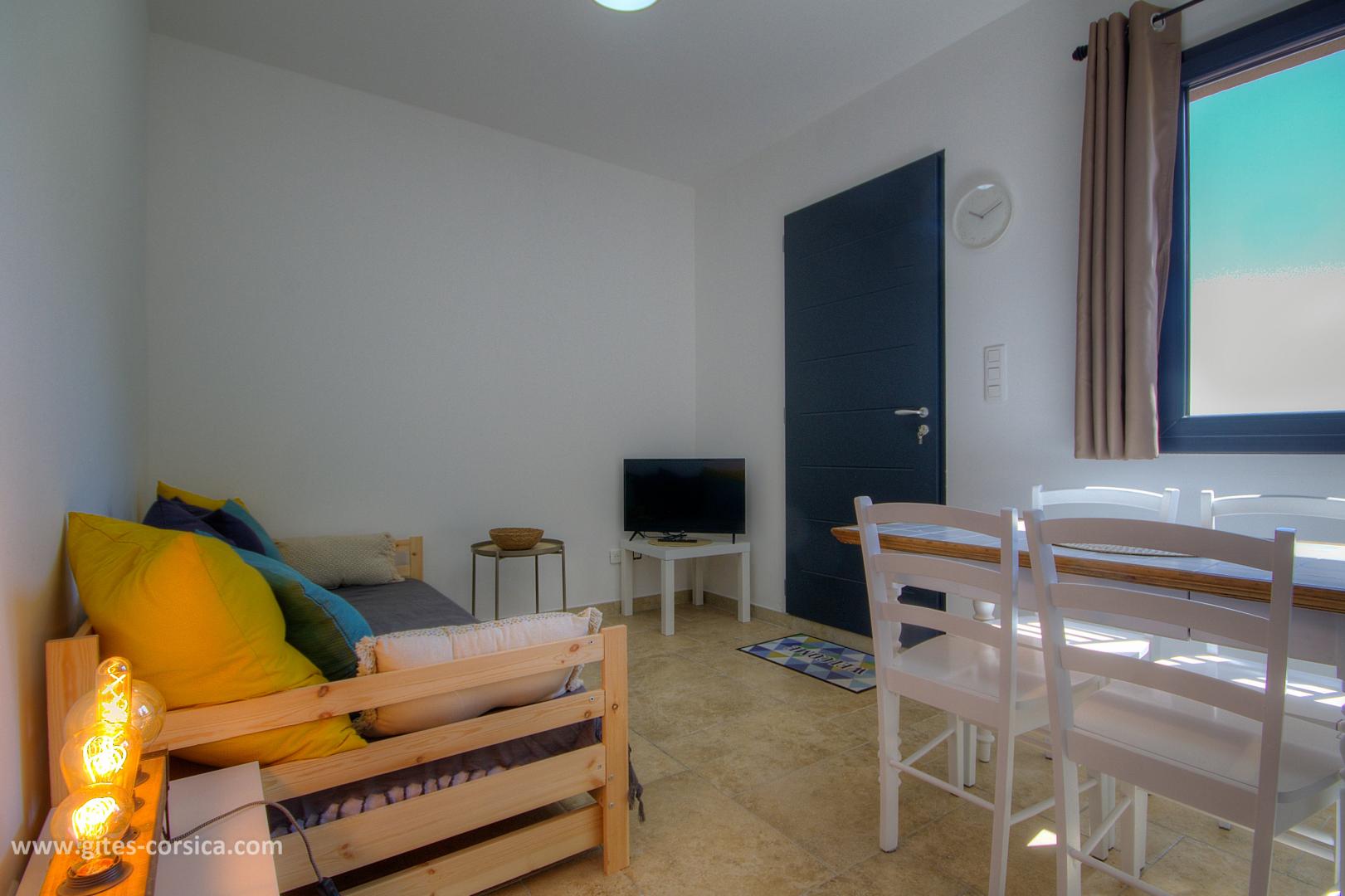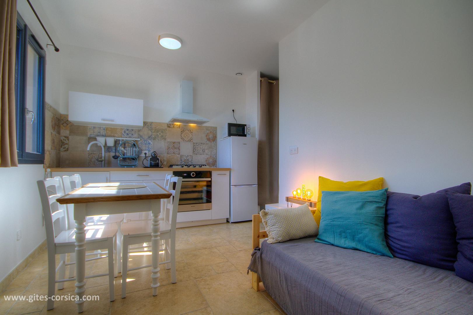 - Séjour/cuisine comprenant une banquette-lit en 90x190 cm
