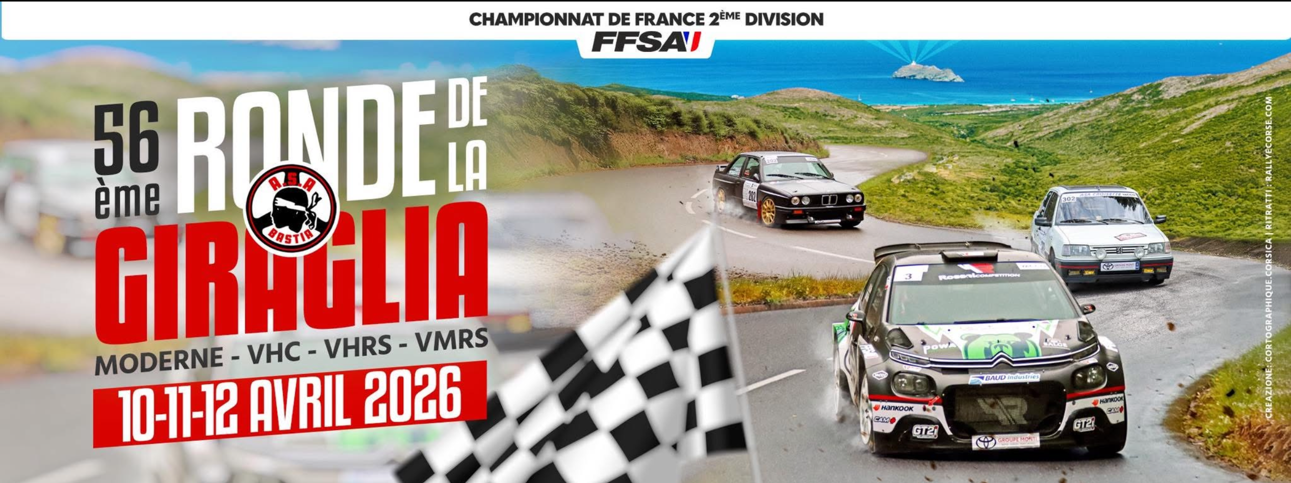 "Descriptifcourt": "Le Rallye Ronde de la Giraglia 2026, qui compte pour le Championnat de France 2e division, se disputera du 10 au 12 Avril autour de Bastia et du Cap Corse.",