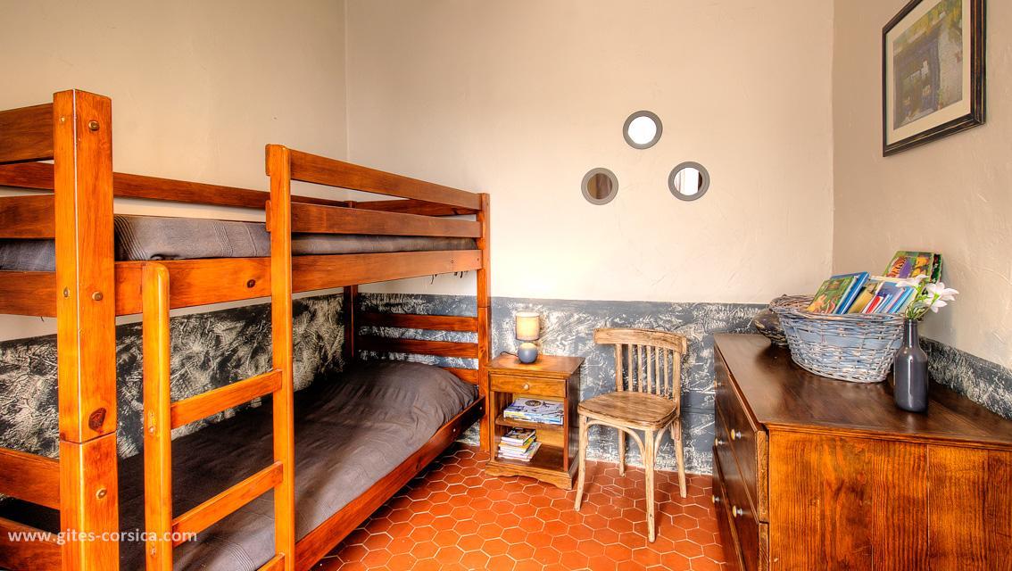 - 1 chambre comprenant 2 lits en 90x190 cm superposés (le lit supérieur ne convient pas à un enfant de moins de 6 ans)