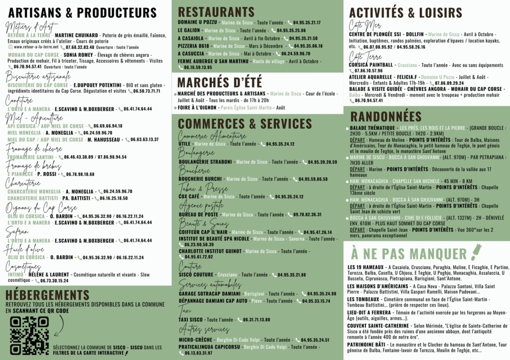 Retrouvez dans notre brochure ci-dessous toutes les informations pratiques sur le village de Sisco – Siscu